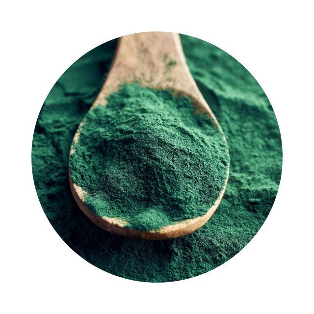 Ingredientes: Espirulina, Vitamina B1 (Mononitrato de Tiamina), Vitamina B2 (Riboflavina), Vitamina B3 (Nicotinamida), Vitamina B5 (Ácido Pantoténico), Magnesio (como Óxido de Magnesio).