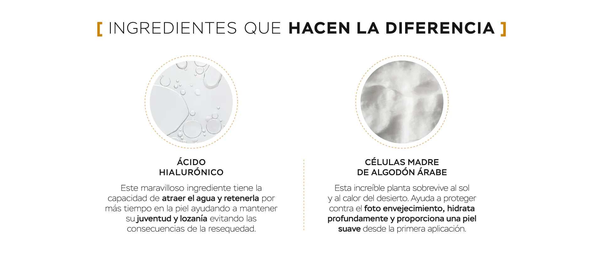 - Las células madre de centella asiática promueven la hidratación, firmeza y elasticidad.