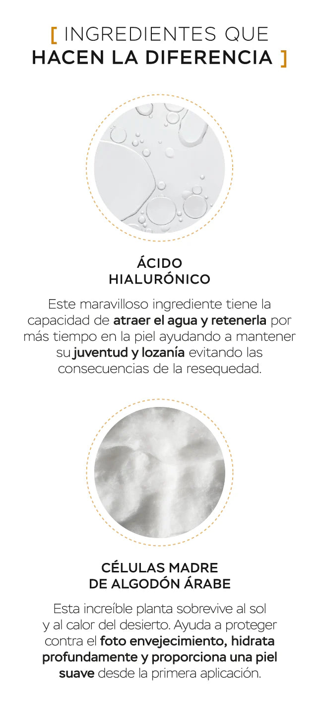- Contiene Acido Hialurónico para una piel increíblemente hidratada.**